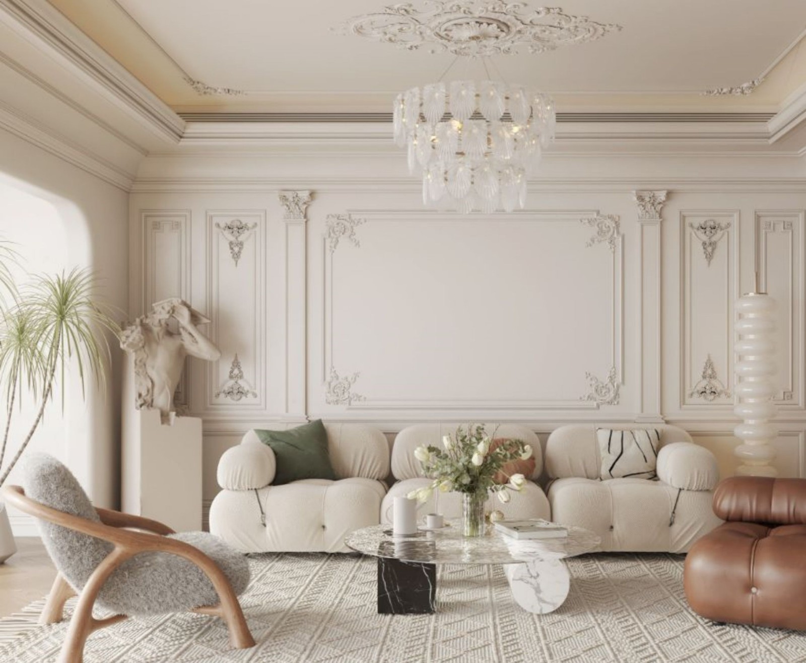 法式线条凸显质感,奶油色调柔和,阳台户型门洞拓宽了空间视觉