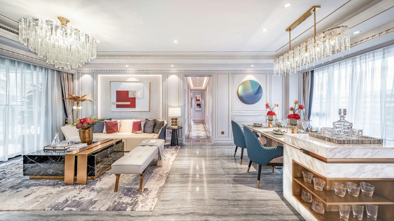 开放式吧台的餐厅,是品质生活的升级。岁月有声,自成高华,浓淡相宜,四季相安。无论是与家人的温馨早餐、与爱人的烛光晚餐或仅仅只是闲暇之余的一支雪茄,皆是享受。