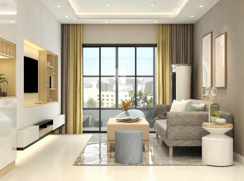 材料方面,地面采用地砖、卧室为木纹砖、墙面以墙纸为主。主卧部份,使用无主灯设计,飘窗制作飘窗柜,增加收纳同时也可在此休憩,一侧放置书柜,可在此阅读。