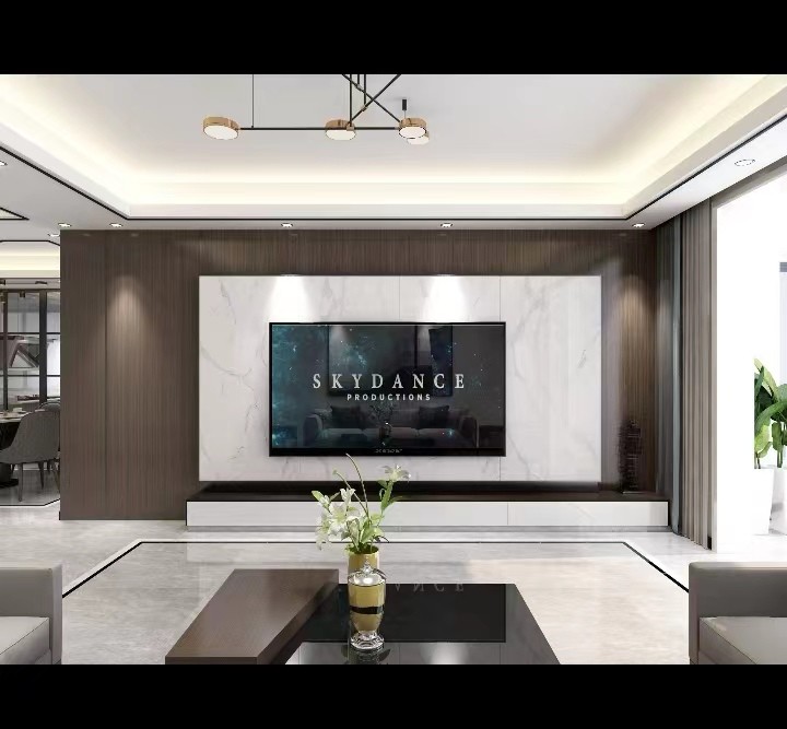 采用木饰面与大理石的材质搭配