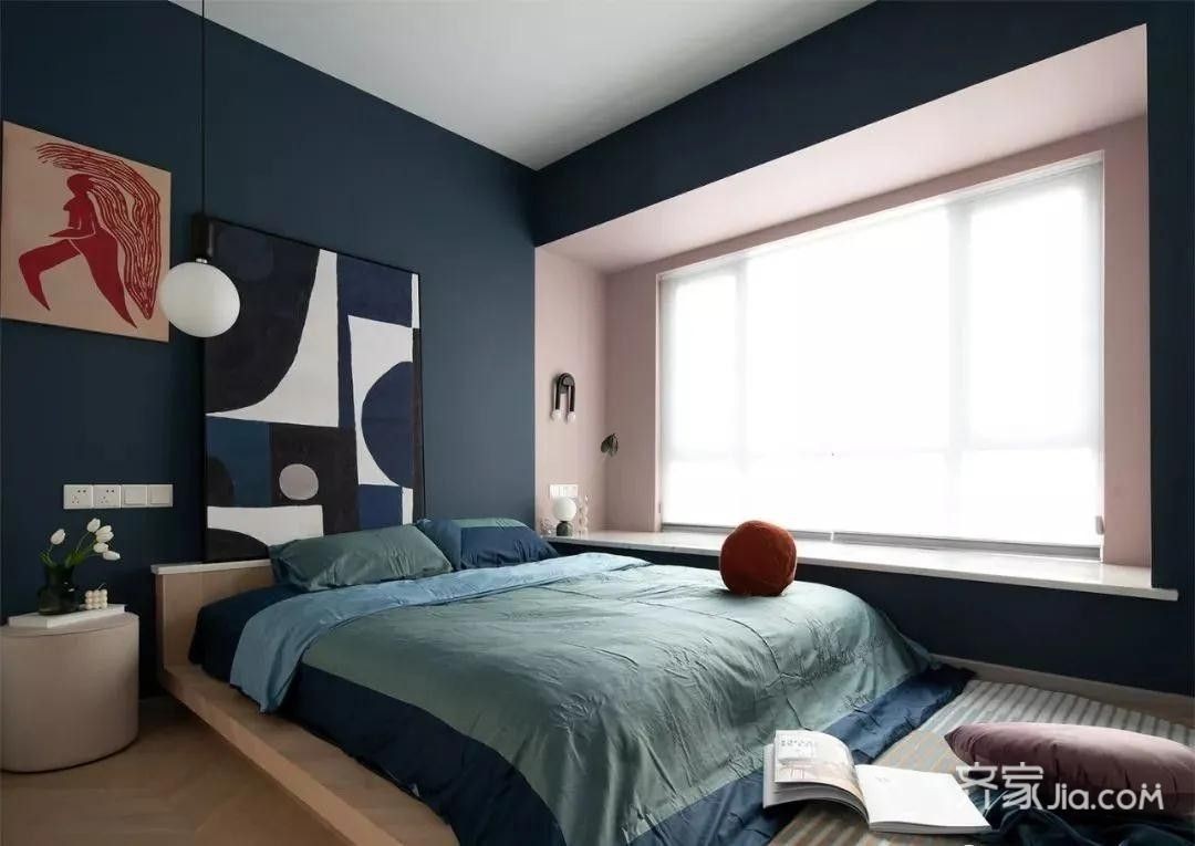飘窗单独刷粉灰,空间构成更加的立体,营造出空间干净明快的基调。