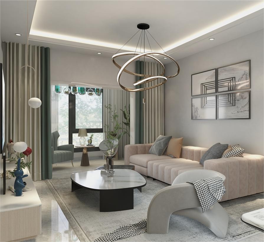 客厅是家庭生活的重要区域,从地毯到沙发 都是不过分修饰,直击天然的素色 让整个空间设计显得静谧,光的和谐 令客厅悄然之间注入无限的生机和活力