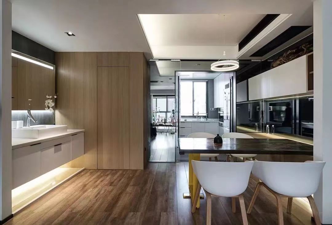 冰箱 烤箱等电器都嵌入在了柜子里,让人感觉更加的整齐