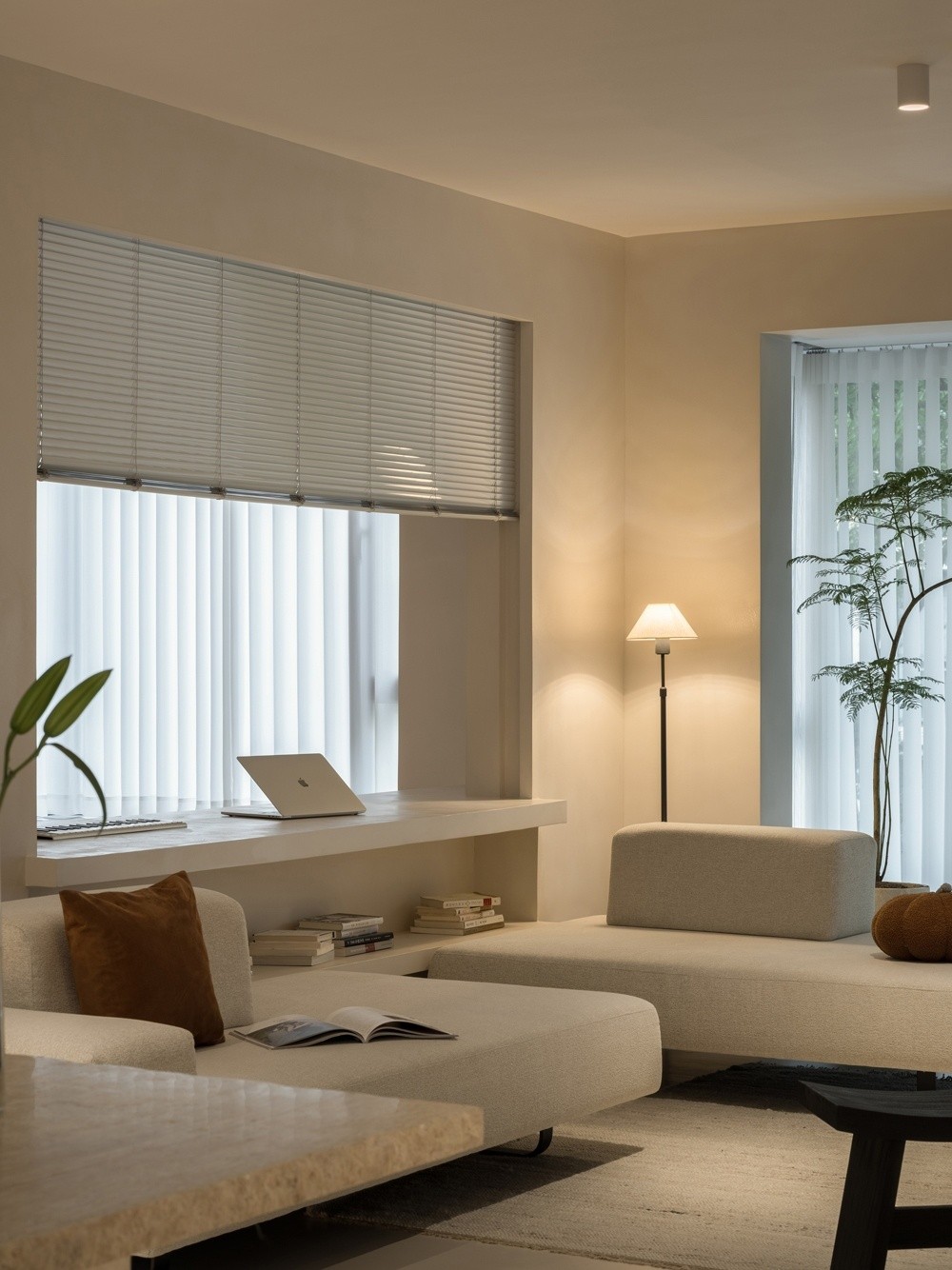 阳台与客厅打通无界,利用大幅落地窗引景入内,满目野蛮生长的绿打破室内外的界限,将自然的生命力带入室内视野,室内纯粹圆融的米色系空间是***的映衬,于一侧肆意生长的植株,同室外形成呼应,一内一外,生命力攀生,交织出令人满目舒畅的视觉效果。