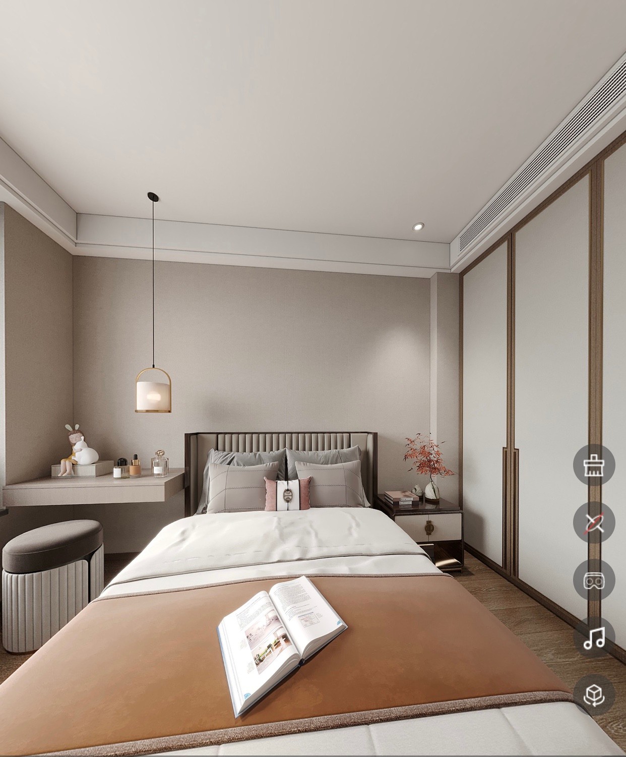 户型比较大,业主需求只要两个卧室。客厅做敞开式书房,比较通透