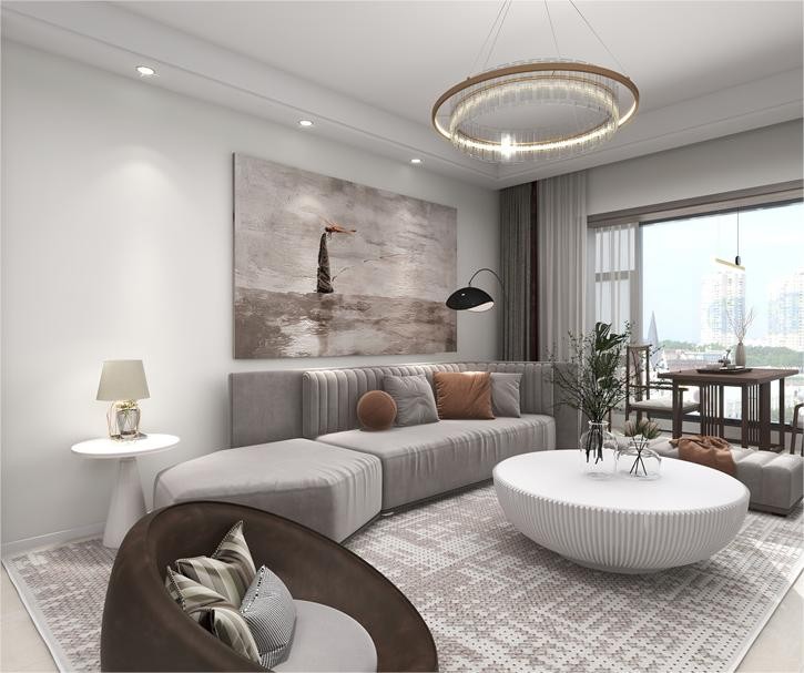 布艺沙发与木质材质的加入 流露出随和,自然的生活气息 玻璃的点缀增加了视觉空间得层次感 更让宁静的空间里多了一些灵动活泼的光泽