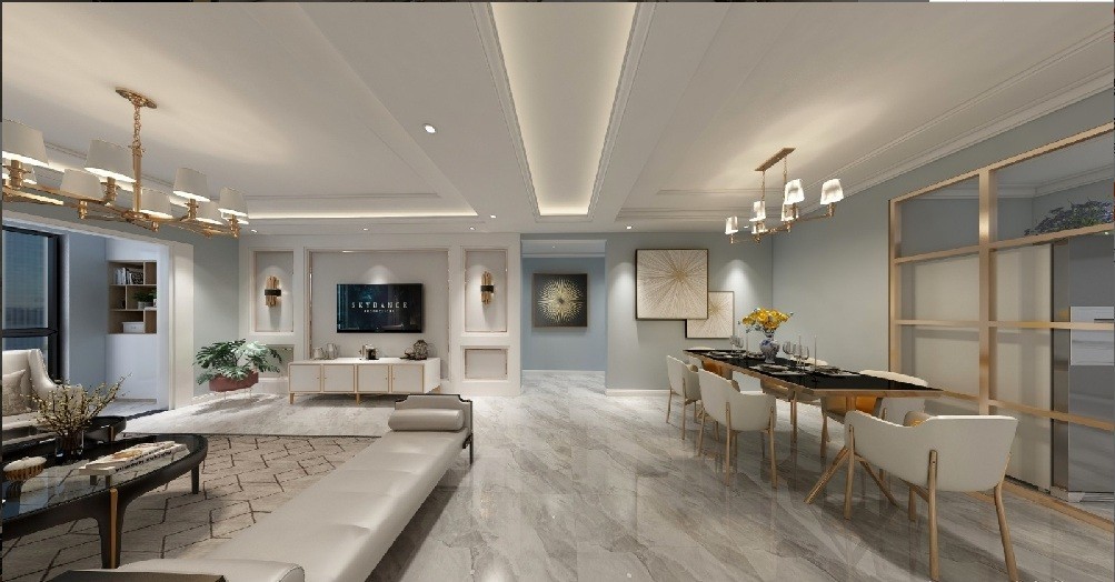 宽敞大气的客餐厅,把轻奢风格体现的淋漓尽致。