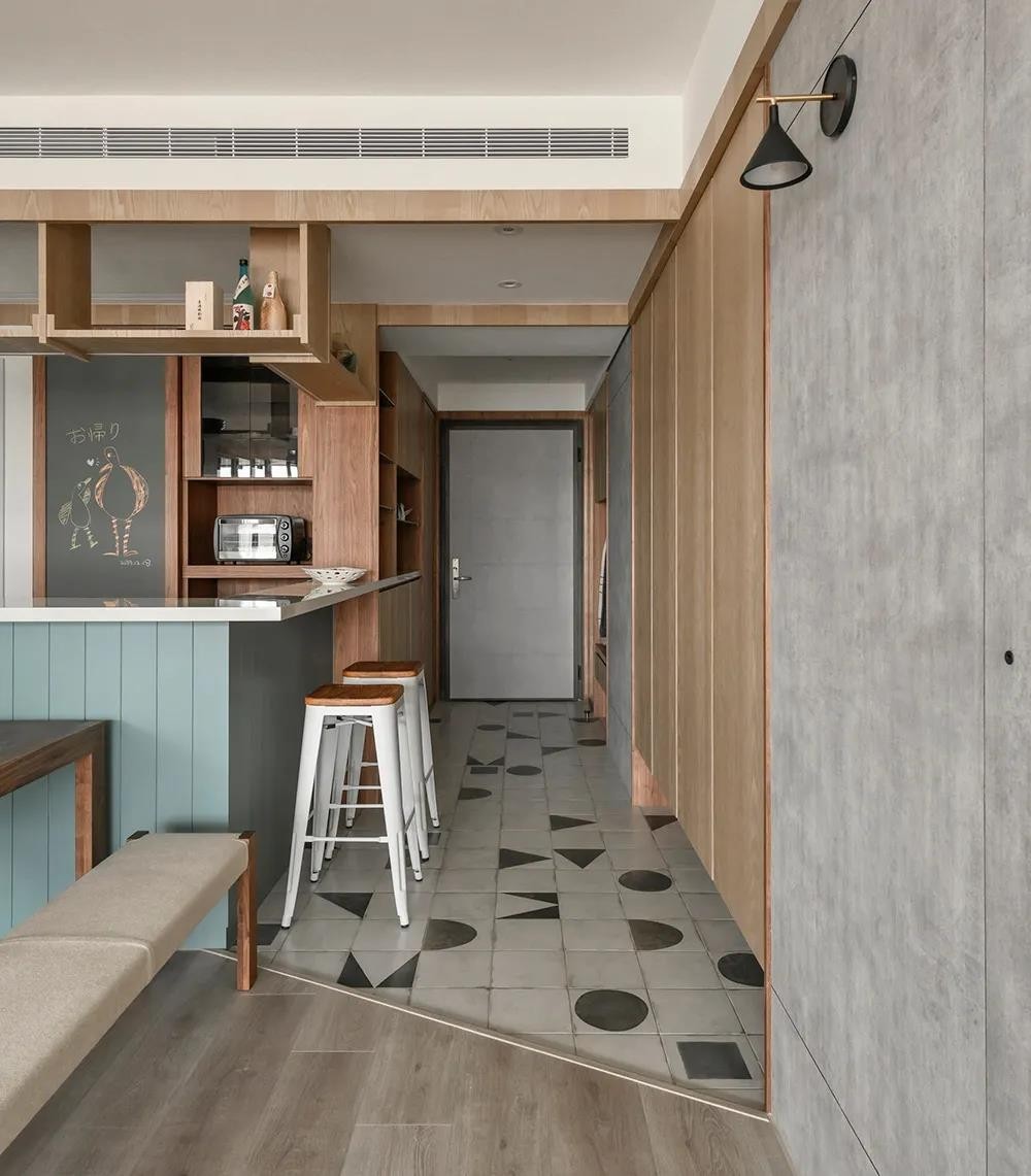 橱柜运用了拼色设计,整个空间都显的简约