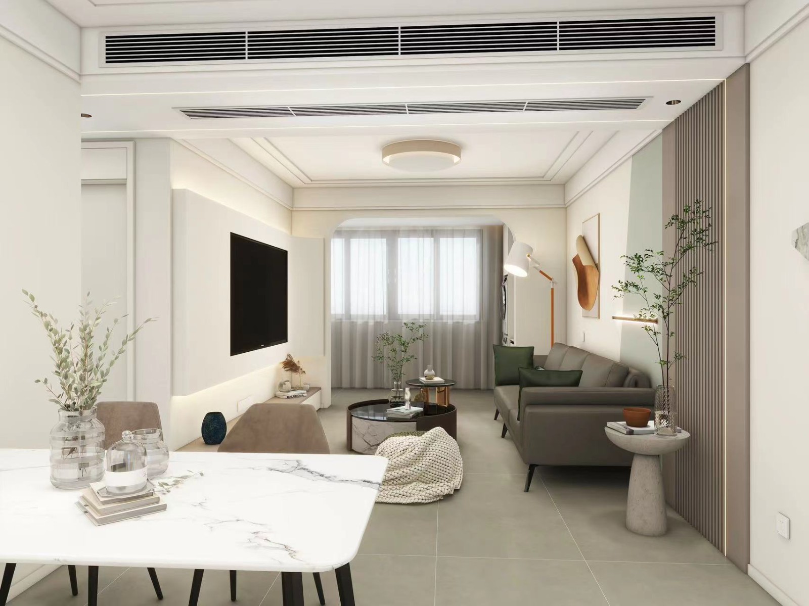 客厅于阳台相连之处采用了圆形拱门的设计,整体上更加柔和。