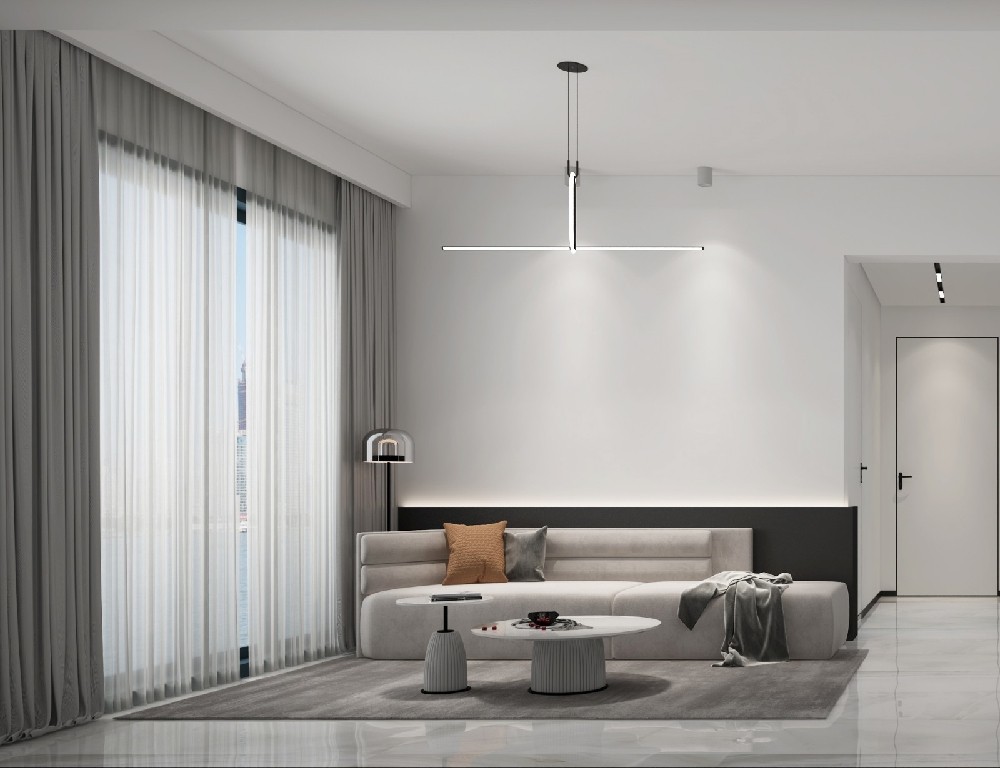 客厅空间简约大方,灰白与米白的色调遥相呼应,既不失家的温暖,又保证足够耐看。