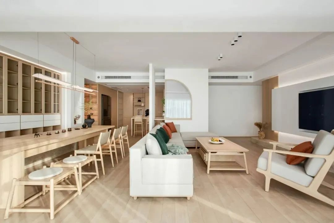 餐厅是一张超级大的长桌,兼顾餐桌和茶桌的功能