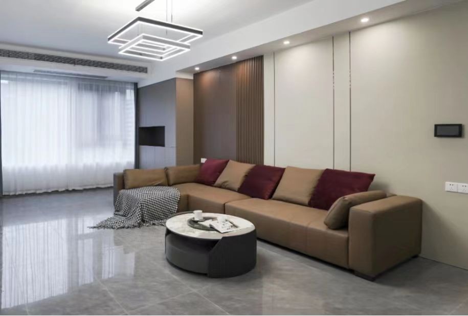 沙发背景墙采用的欧宅硅碳纤维大板+格栅的搭配,与电视背景墙相互呼应,现代手法中不失婉约气质,色彩搭配上层次分明,经典优雅,简约耐看。