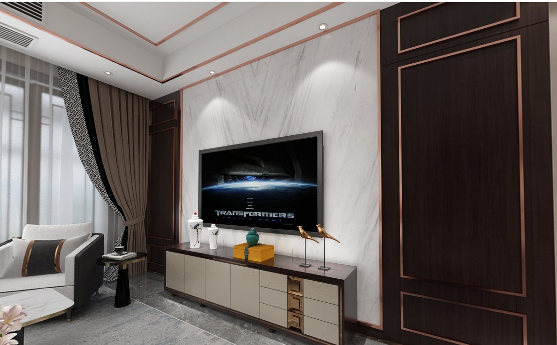 客厅的整体氛围,主要以中式的深厚沉稳的底蕴,简单大气为主以少量的现代轻奢元素为辅。