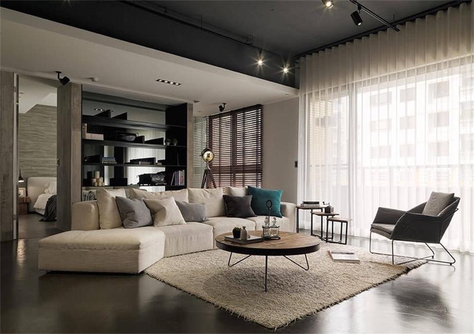 全屋空间通透,简单。 整体营造出一种成熟、独立的感觉。简单的沙发和精致的茶几, 凸显除了优良的艺术品位。