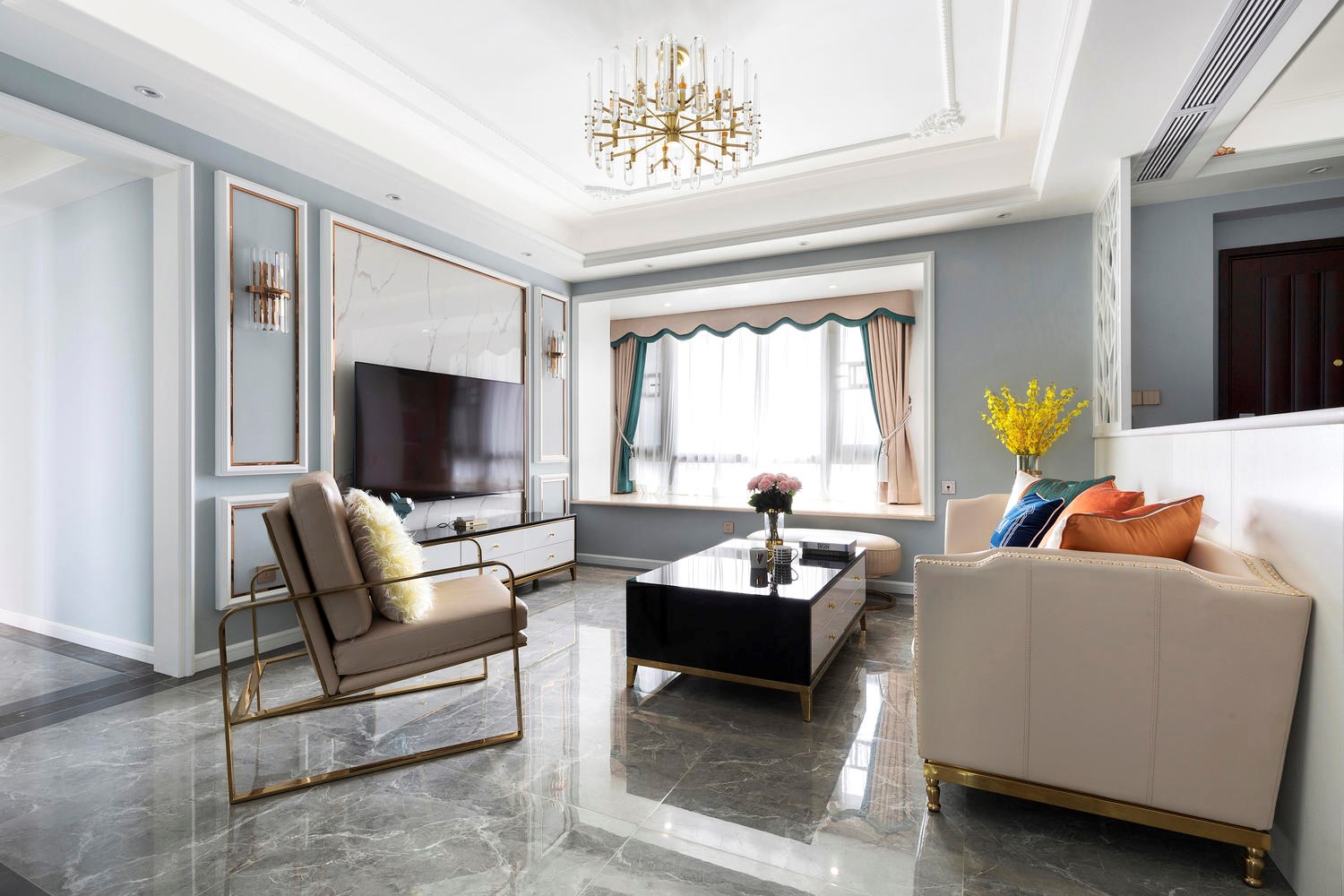 宽敞明亮的客厅给人一种宾至如归的温馨感,而独具匠心的家具和装饰则透露出主人的品味与个性。