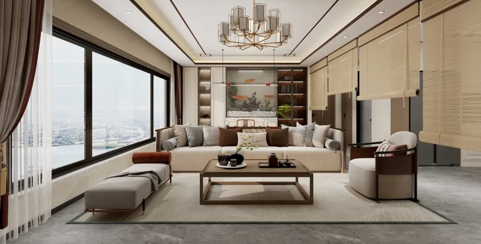 装修以木质材料为主,以“空纳万境”为设计思想, 简约的线条,纯粹的色彩,营造出了新中式的风格,淡雅的木质色调,传达出了一种古典的韵味。