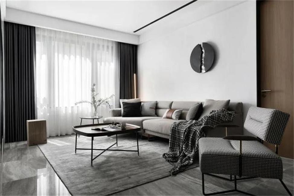整体空间硬装有点黑白配的***设计感,布置上灰色地毯与沙发,则是让空间显得简约舒适而惬意。