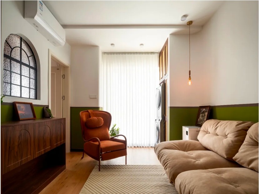 利用原始的阳台,空间采光通透, 所以墙面选择白色、绿色做半墙设计,***化增强小户型公区的明亮度, 再结合软装产品,营造出南洋复古的基调。
