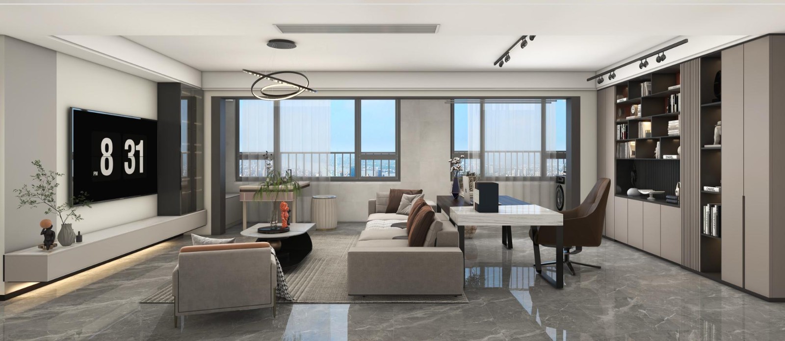 客厅中的落地窗提供了充足的自然光线,这也是现代装修中越来越被重视的因素。