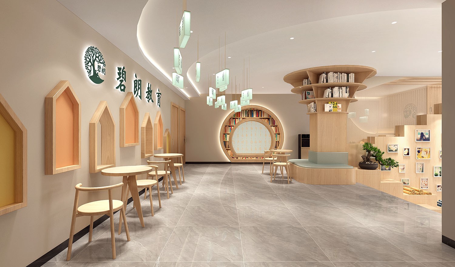 极具创意的书柜摆满了琳琅满目的书籍。置身于此,人们能够深切地感受到浓厚的学习氛围。而这一设计,不仅为学员提供了知识的滋养,也让等候孩子的家长在闲暇之时能够随手查阅,沉浸于书海之中,使等待的时光变得充实而有意义。