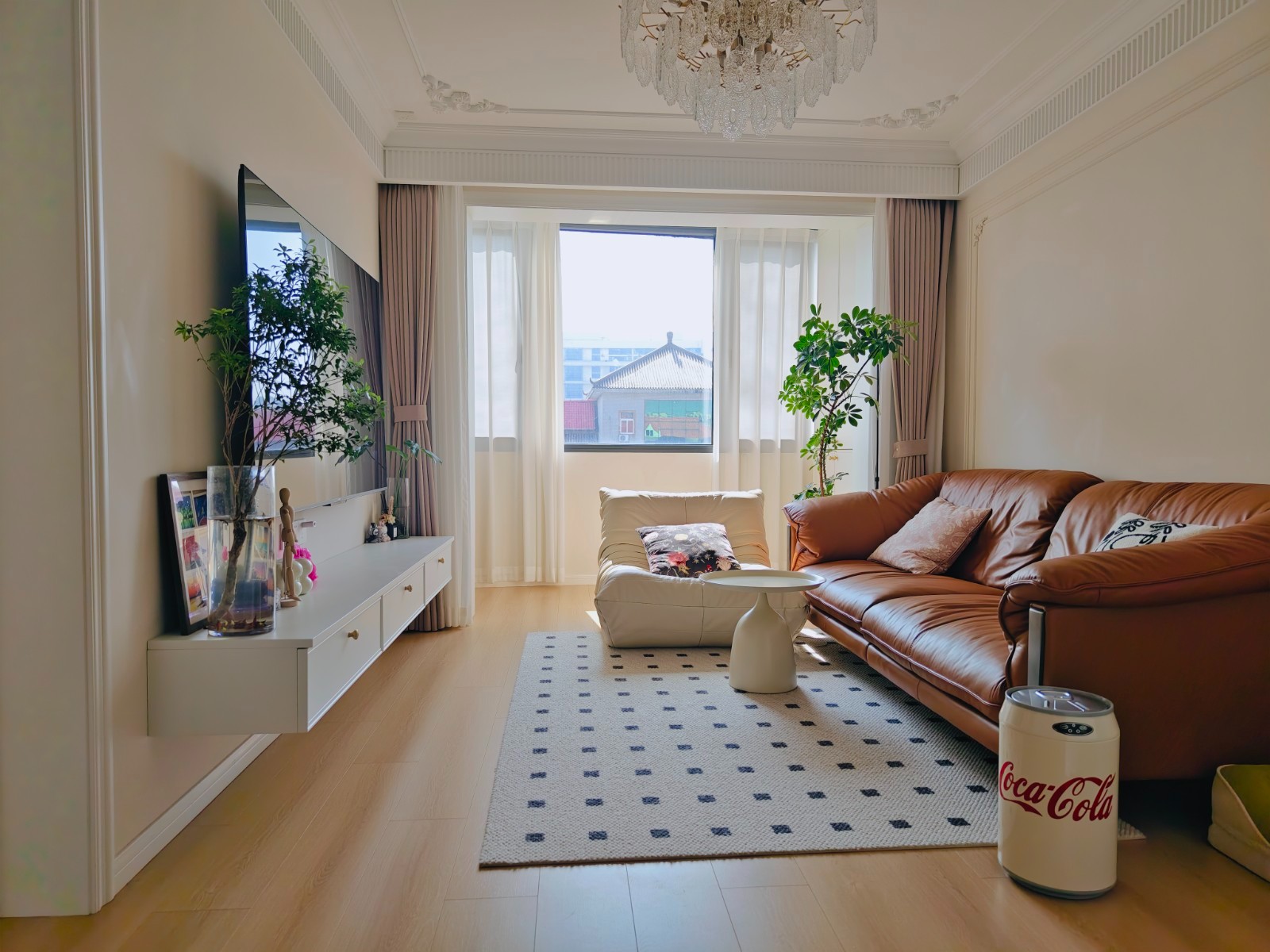 客厅改造南北通透,移除掉原先阳台的洗衣机到卫生间,充分解放休闲阳台。