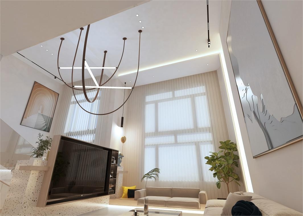 通过浅色调和简洁的设计元素,营造出一种简洁而不失品味的氛围。墙壁选择了白色,为整个空间奠定了明亮、清新的基调。地板上的大地毯则增加了空间的温馨感,同时与白色墙壁形成对比,使空间更加立体。