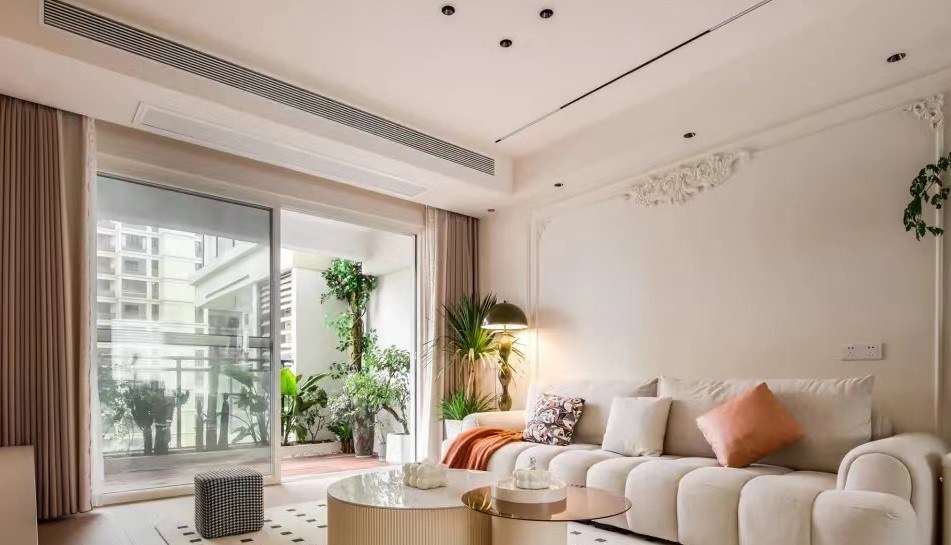 白色和奶油色的主调,营造出温馨而舒适的氛围。沙发的颜色与整个空间的色调协调一致,墙面经典的法式石膏线,细节之处展现出精致的工艺。