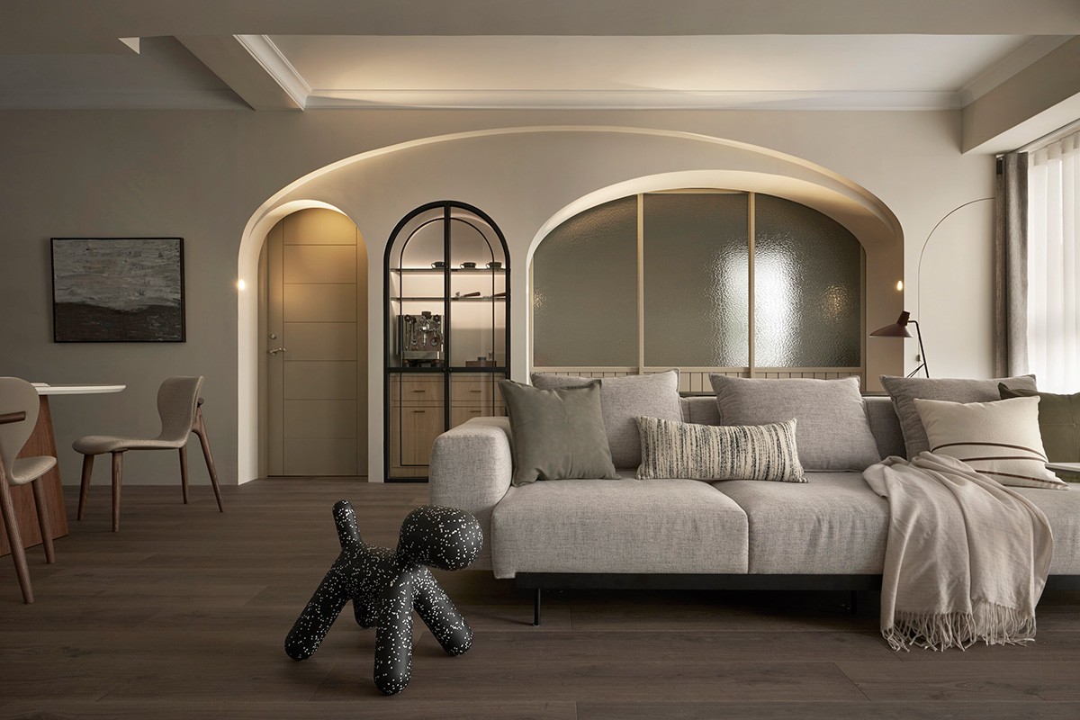 在亲友来访时,可作为客用套房,也能是瑜伽、冥想室,因拱顶墙的捏塑,使家屋弥漫生出舒适度。