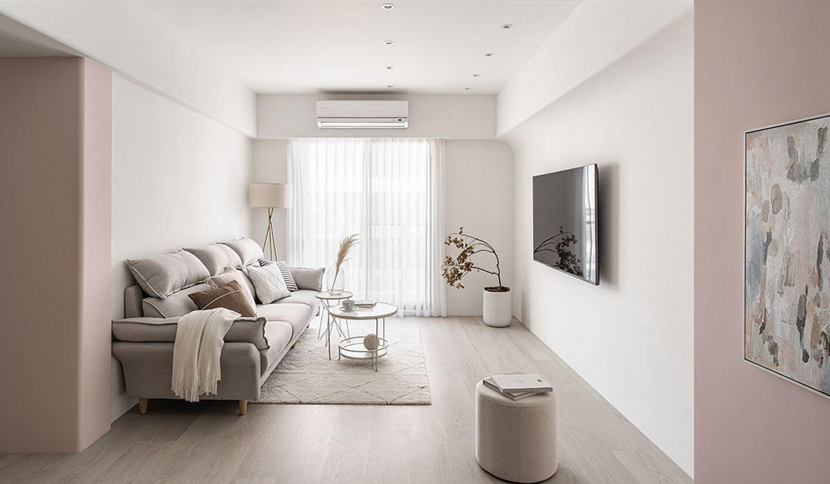 大量留白基底中,揉入主人青睐的玫瑰色,柔和雅致的粉色系不若奔放艳丽的亮红,而是以温润感缓缓蔓延,化作一股温柔的力量。举例来说,像是餐厅一侧的结构柱体与入门 45 度角的墙体,皆铺叙上自带仙气的柔粉进而型塑出三个重点色块。