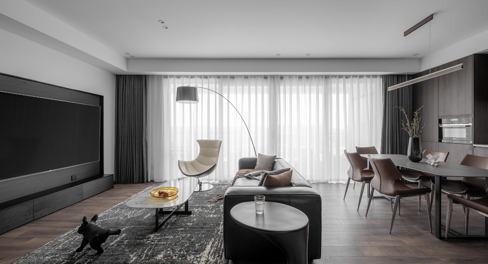 不需要复杂的装饰和色彩,选择现代、舒适、时尚的设计理念。通过对材质的把控,将空间功能的切割与细腻入微的美学来营造沉浸式体验的居家环境。