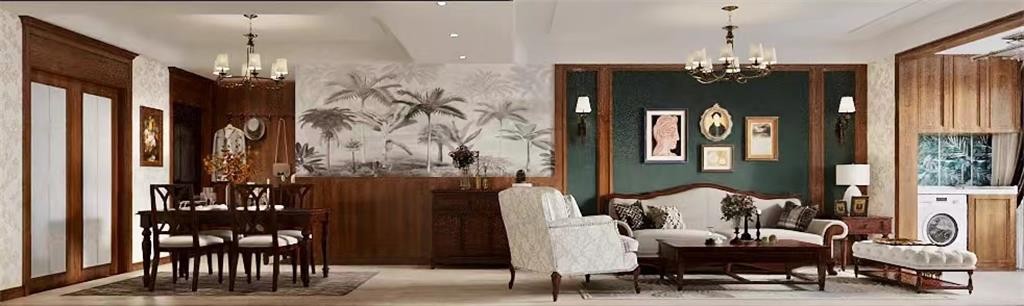 美式古典强调繁复的雕刻,以舒适和多功能为主,但同时也不失怀旧、浪漫的感觉。
