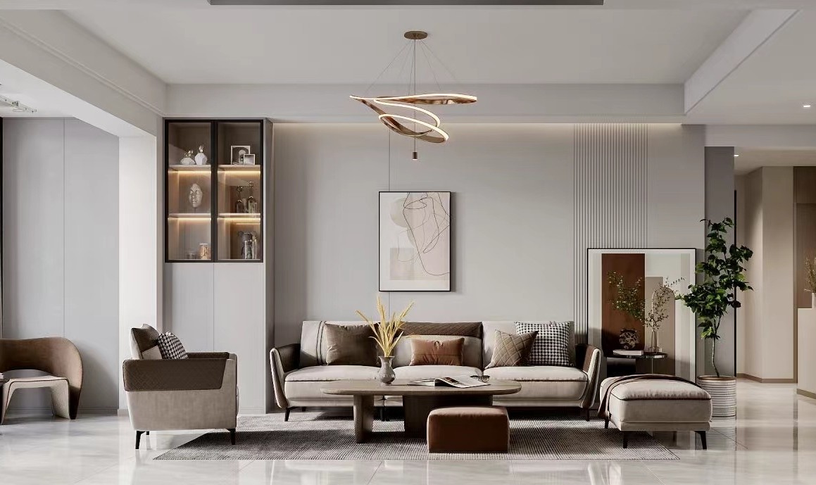 通过巧妙运用色彩、材质和光线等元素,营造出一个既现代又温馨的客厅环境。
