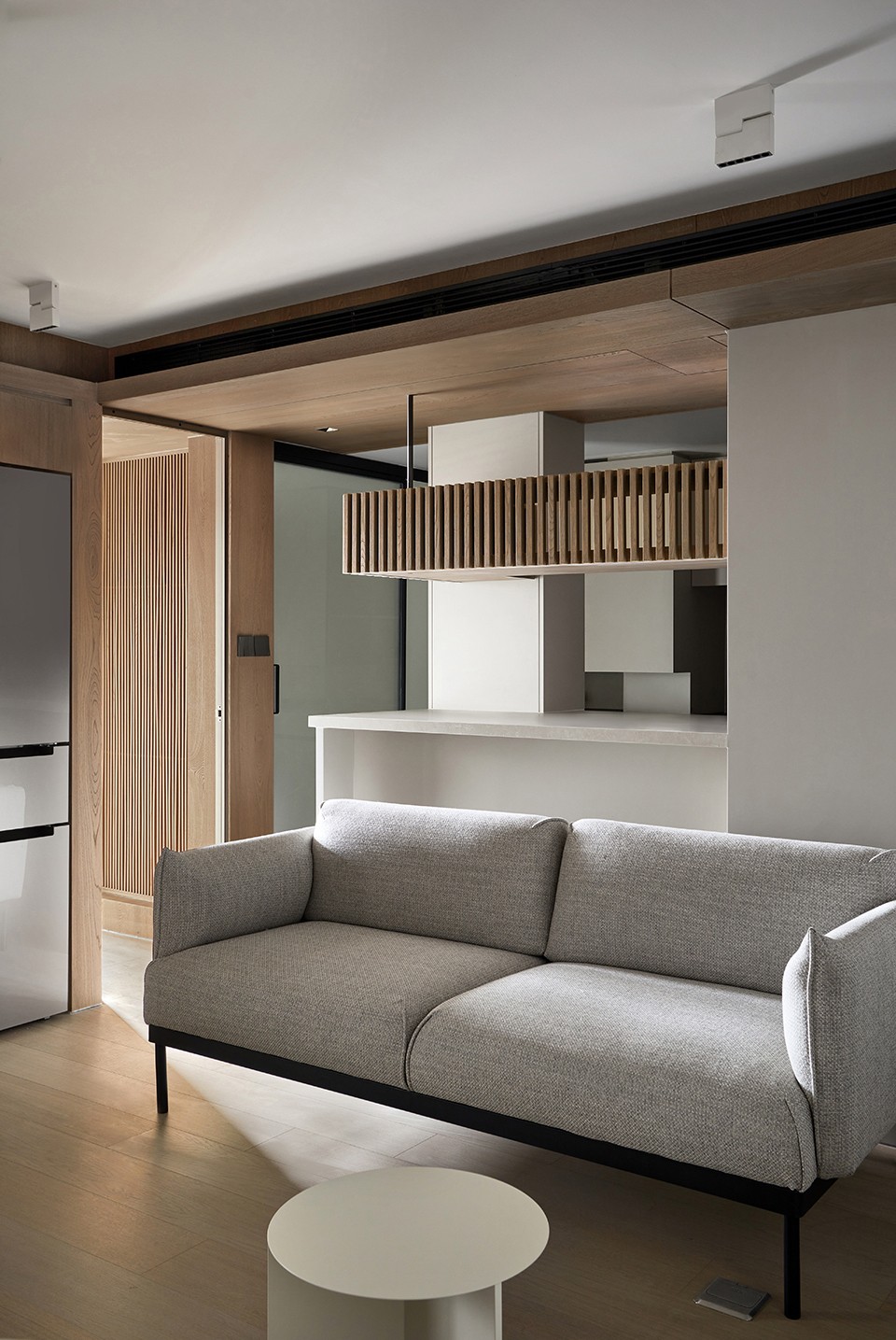 局部的木格栅营造温暖氛围的同时,也能提升空间质感