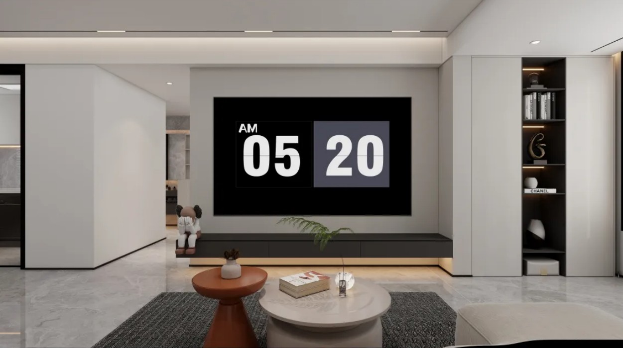 整个客厅以白色为主色调,营造出一种明亮而宽敞的感觉。米白色的沙发与整个房间的色调相呼应,使得空间更加和谐统一。绿色植物图案的抱枕作为点缀,为客厅增添了一抹生机与活力。