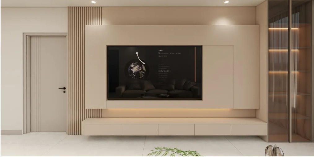 该客厅展现出典型的现代风格,以简洁、实用、 舒适为特点。整体色调以白色和米色为主,营造 出一个温馨舒适的氛围。家具和装饰的选择也体 现了现代风格的简约和时尚白色和米色的搭配 使整个空间显得明亮而温馨,营造出一种舒适宜 居的氛围。