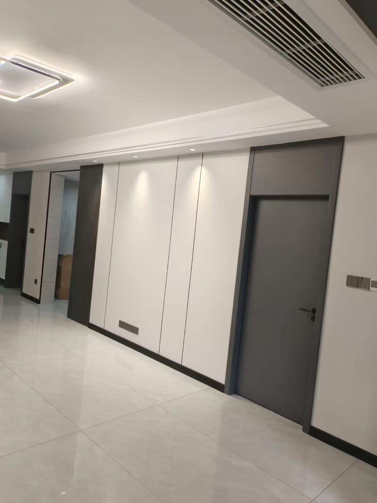 客餐厅一体,整体黑白风格,客餐厅木饰面+格栅高端大气!