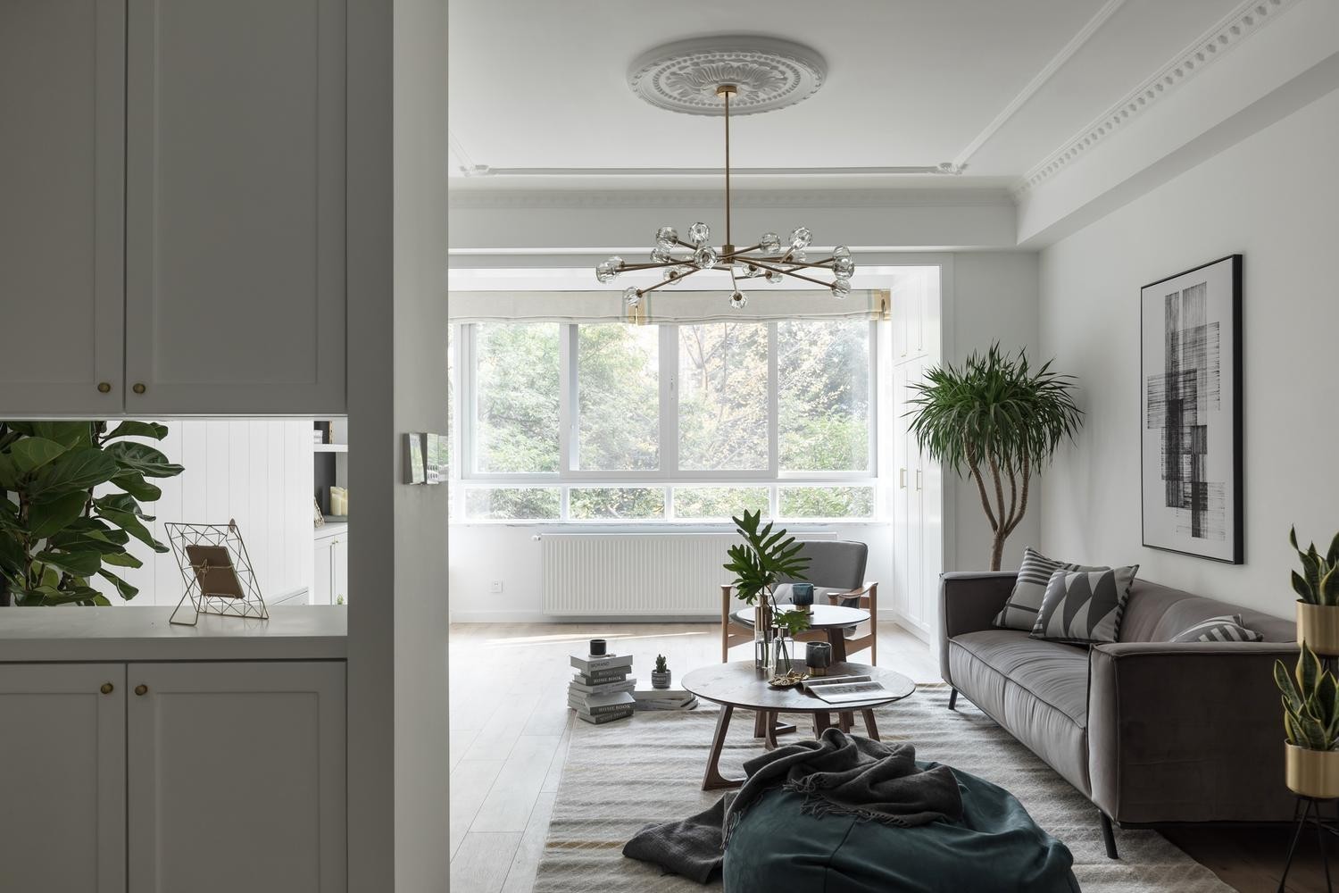 客厅是最能体现风格的地方,所以在本案客厅采用了木地板来进行铺贴,把北欧的温馨感体现出来