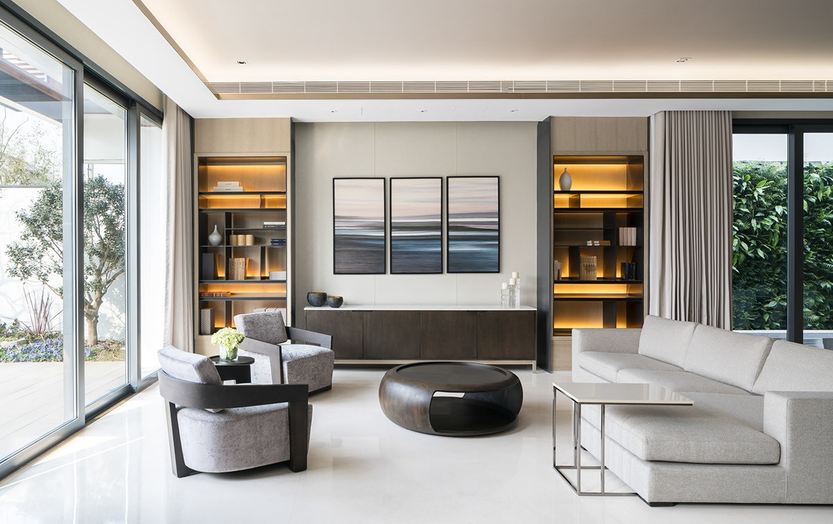 简洁舒适的线条感觉,石材木质的配合,体现主人的品味,花园的造景给人想象空间,平静的心态