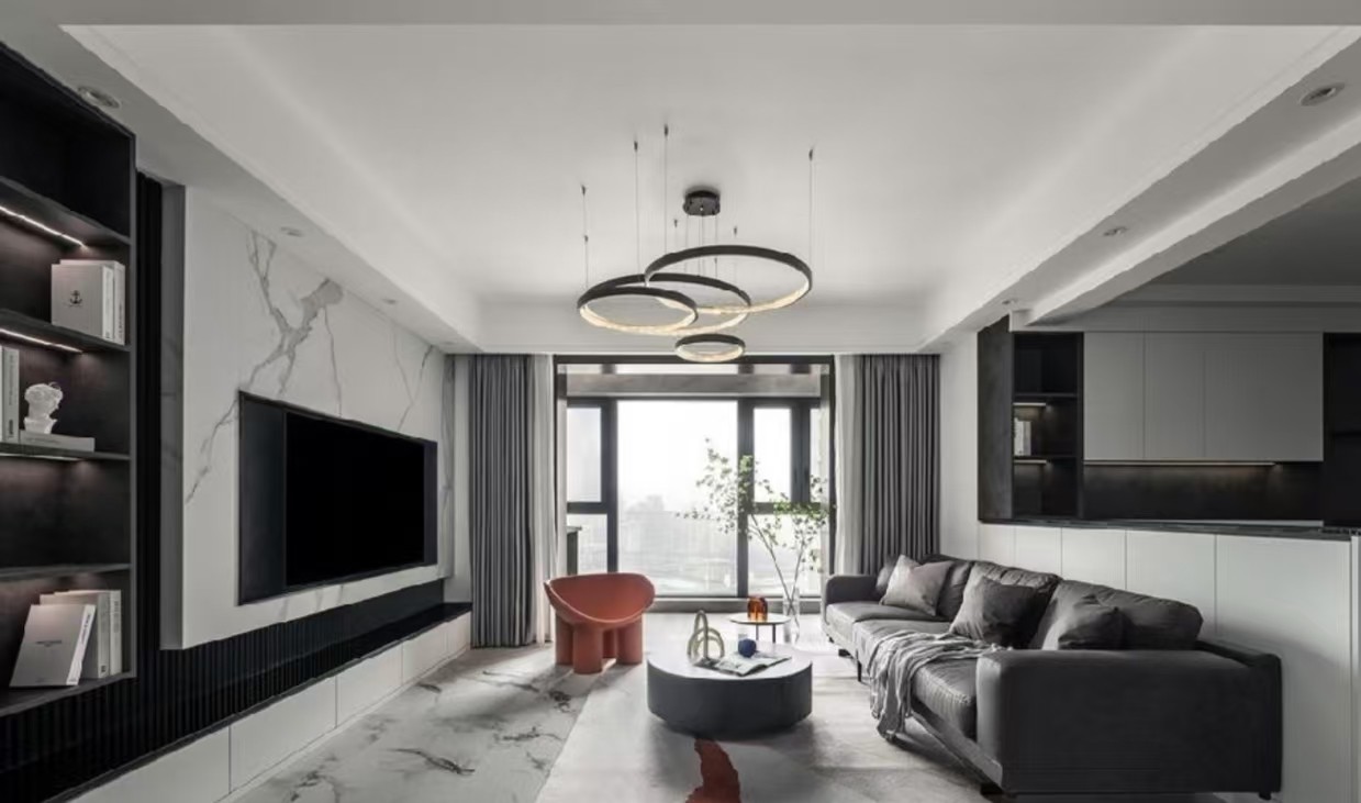 大理石电视墙搭配环形吊灯,时尚大气;阳台打通,采光***。卧室色调沉稳,营造舒适氛围。卫生间干湿分离,实用美观。整体布局合理,动线流畅,空间利用充分,细节处彰显品质