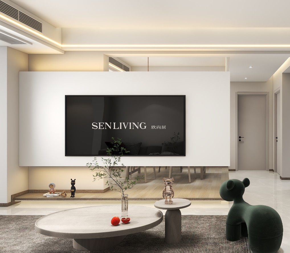 灰色沙发搭配多彩抱枕,舒适且具层次感。不规则造型茶几时尚独特。冰箱嵌入定制柜体,节省空间且美观。墙上抽象挂画增添艺术氛围。整体色调和谐统一,软装搭配巧妙,营造出温馨舒适又不失格调的居家空间,满足日常休闲与待客需求