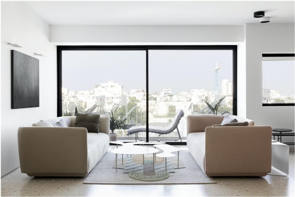 6 米长的到顶柜体单元和金属框架定义了四四方方的主人套房。并在地面铺设浅色水磨石,营造惬意温馨生活场景