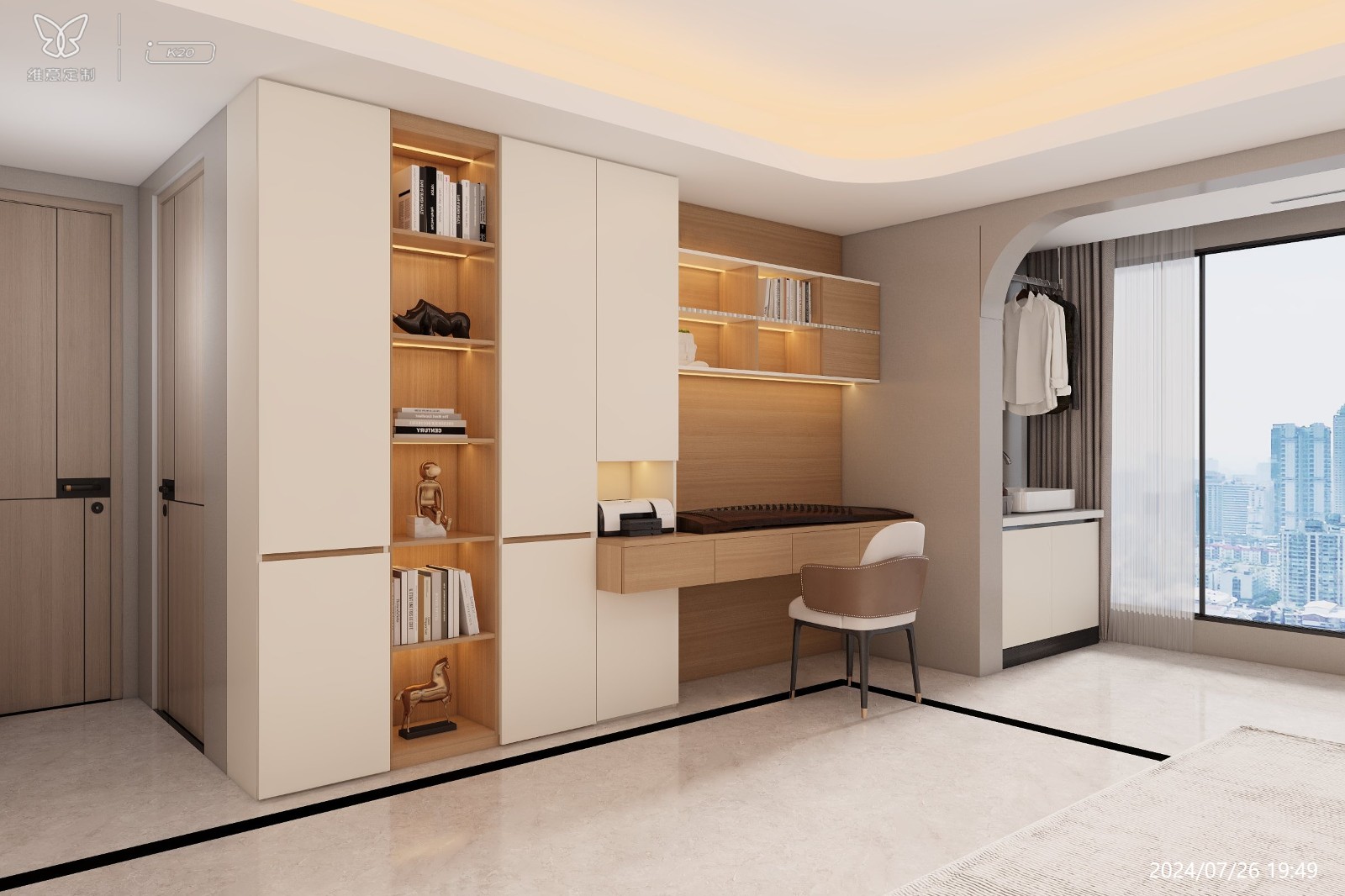 通常采用无主灯设计,以筒灯、射灯、灯带、落地灯等辅助光源为主,营造出温馨、柔和的光影氛围。灯光颜色多选择暖黄色,进一步烘托出奶油风的温暖与治愈