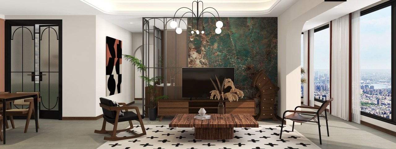 简约的茶几与电视柜设计,使空间显得更加通透和开阔。