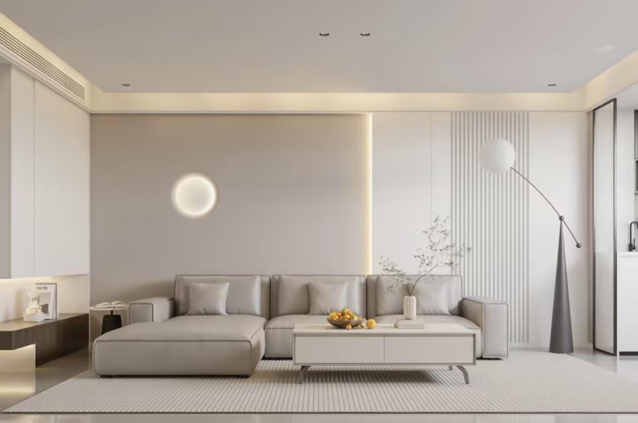 柔和的沙发造型和颜色,背景墙呼应一体性更好