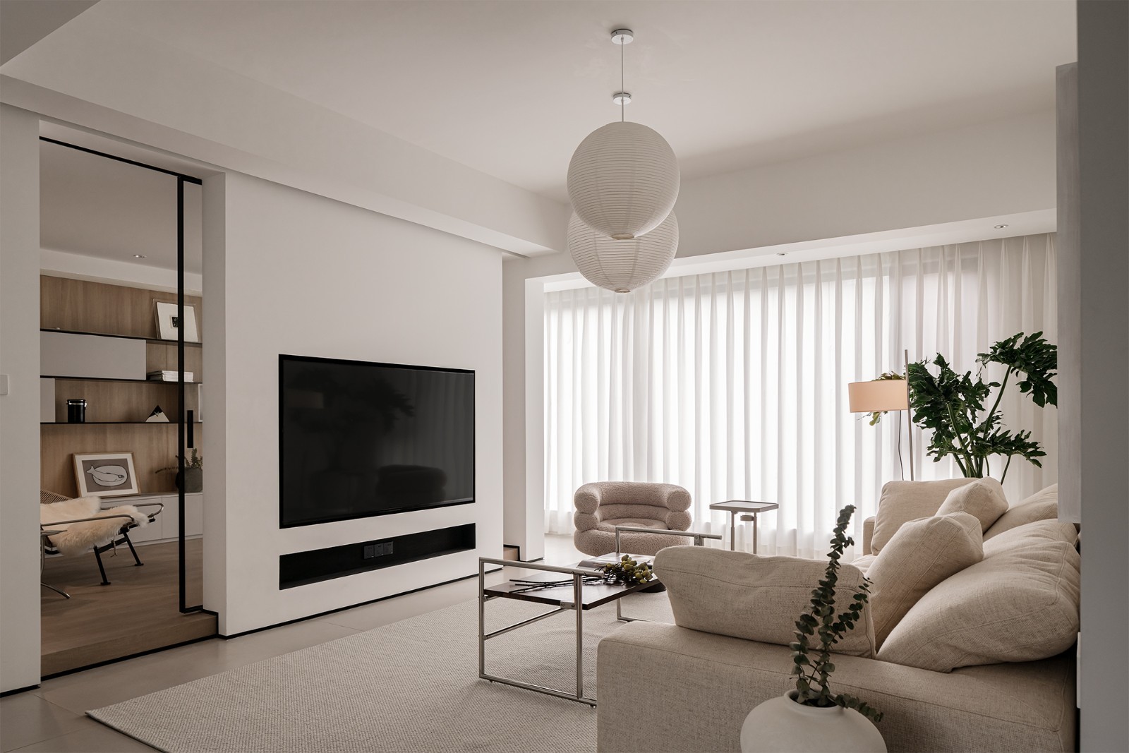 简约风格更加注重的是软装,沙发与灯具与窗帘