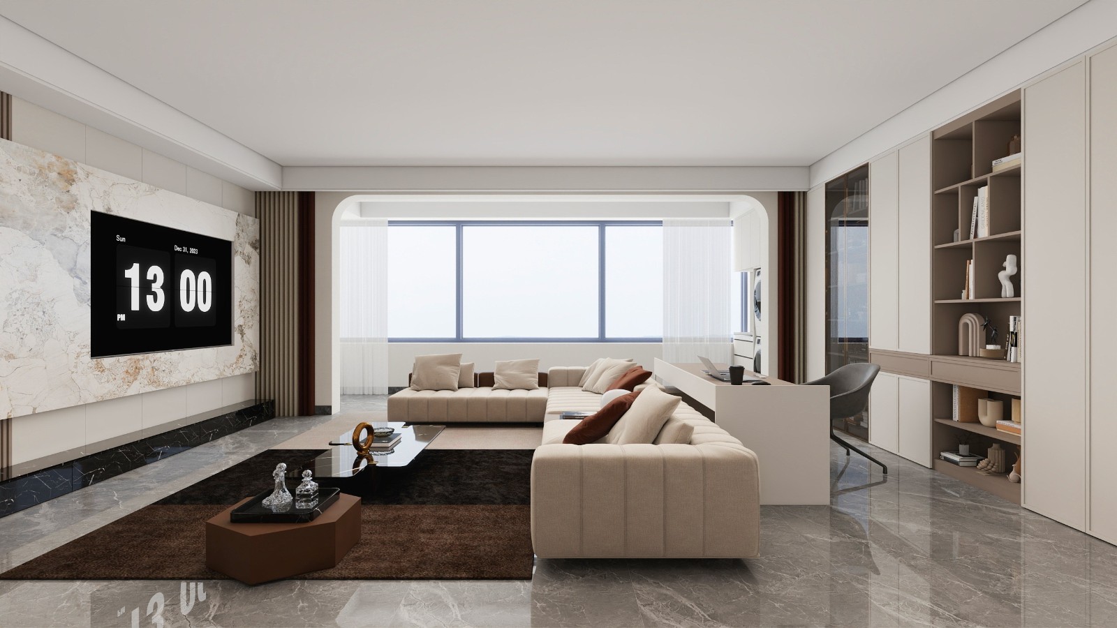 电视背景+客厅书柜设计