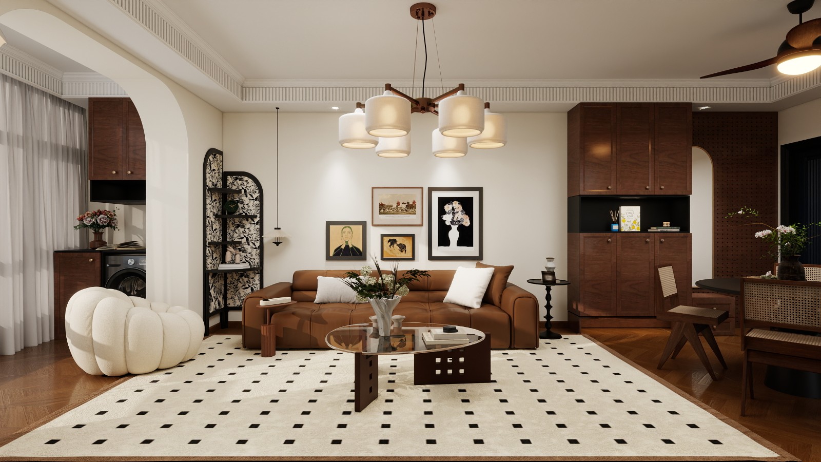胡桃木家具配复古灯饰,质感浓郁