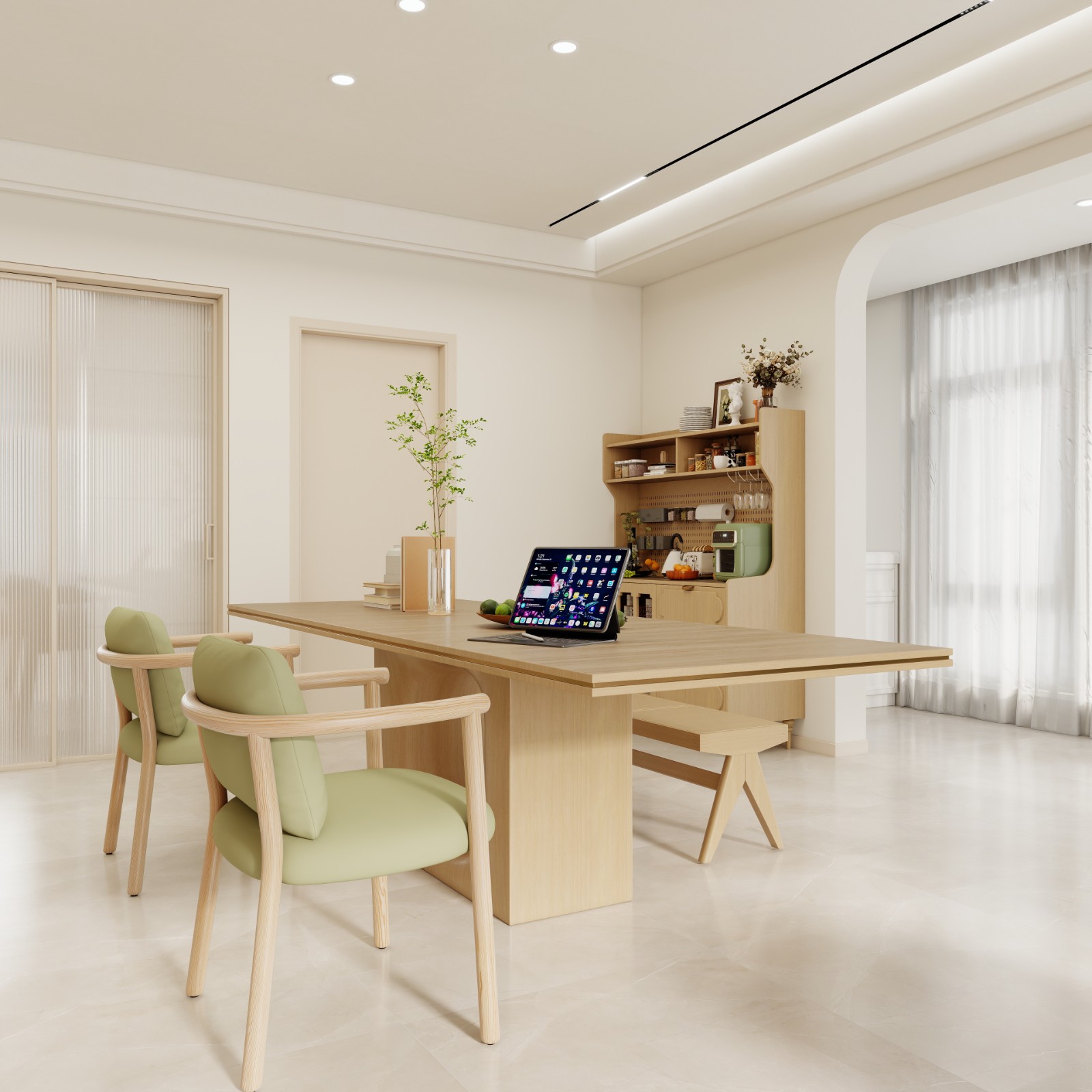 通透布局,温润原木融入奶油暖色