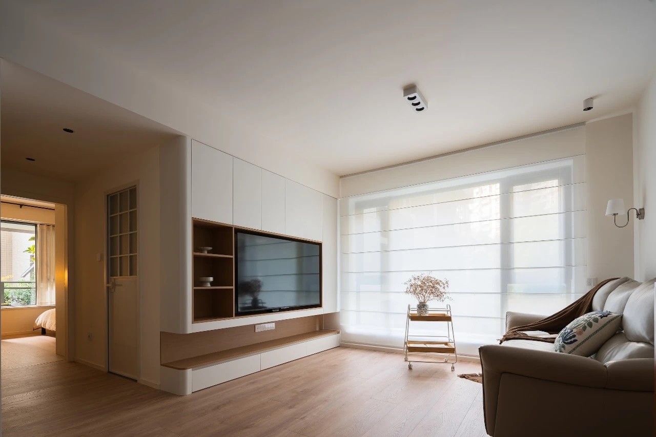 客厅是比较干净简单的设计,大白与木色的搭配运用永远不会出错。
