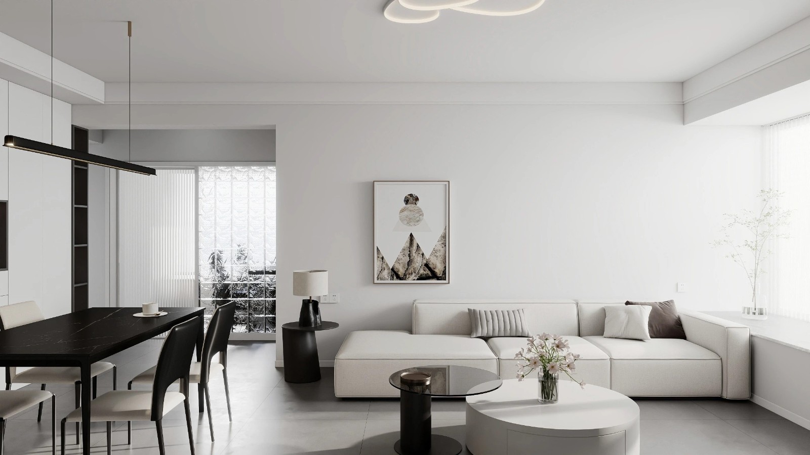 极简风格的空间以黑白灰为主要基调,极具张力。